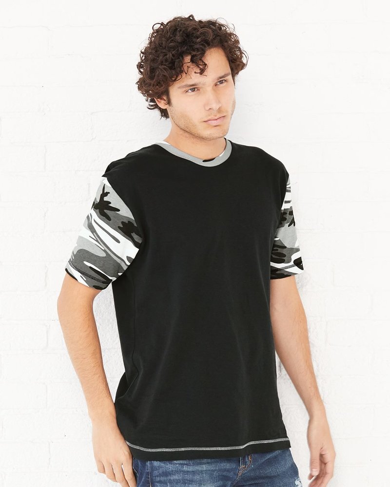 - 4.5 oz./yd², 100% combed ringspun cotton printed camouflage jersey